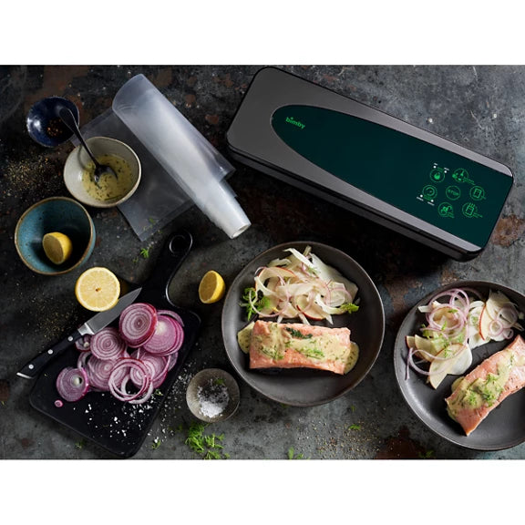 La VS100 ti permetterà in un attimo di confezionare sottovuoto i tuoi ingredienti negli appositi sacchetti e di averli pronti per essere cucinati o conservati.