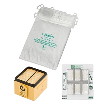 Set Risparmio Ricambi per Folletto VK135/136 Super Filtrello Sacchetti + Dovina + Filtro Hepa